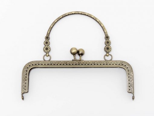 Behel tas/dompet ini terbuat dari bahan logam, ada dua pilihan dengan lebar 18 cm dan 20,5 cm. Ukuran selengkapnya lihat pada gambar. Behel bermotif ukiran cantik yang akan membuat tampilan dompet makin menawan. Tersedia dalam warna vintage brass/kuningan bakar seperti pada gambar. Memiliki handel/pegangan berbentuk setengah lingkaran berukir yang nyaman digenggam. Behel berkualitas bagus, kuat dengan kancing yang tidak longgar.
