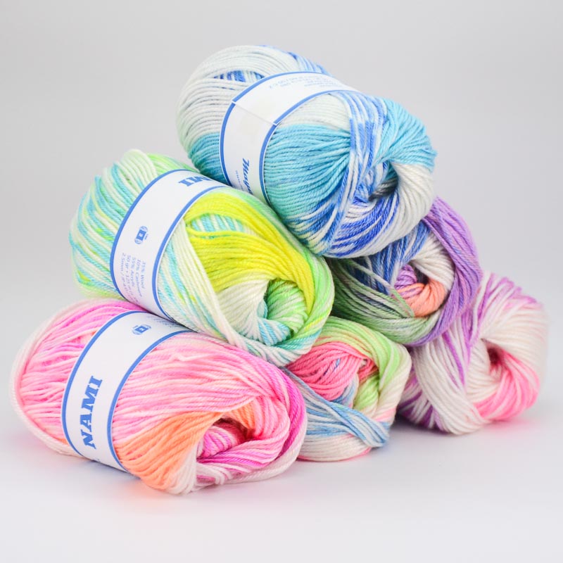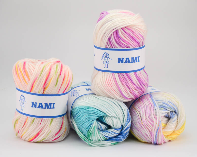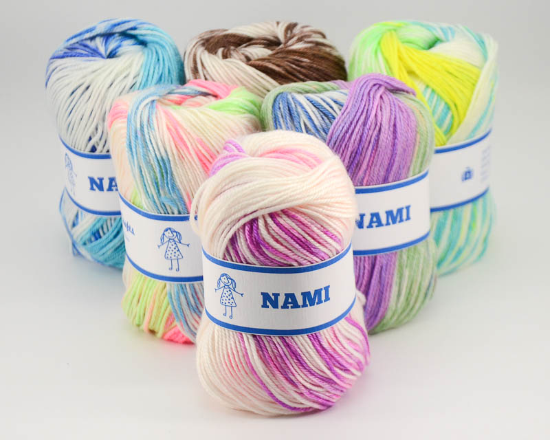 Benang rajut Nami ini cocok untuk wearables. Hangat, halus dan agak mengkilap. Helai benang kecil sebesar katun lokal.