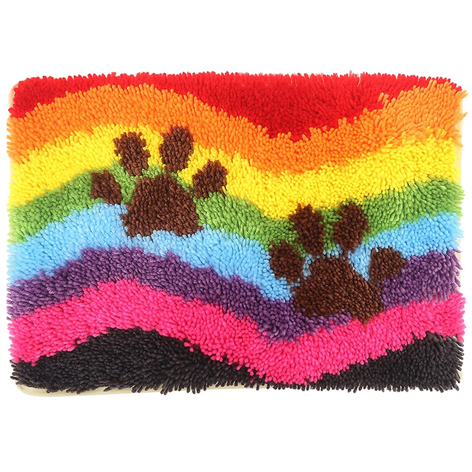 Latch Hook Kit Karpet Rajut motif Rainbow Paw L222 Print